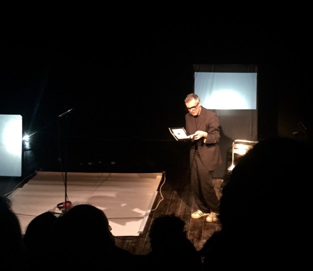 Spettacolo in scena al Teatro Argot Studio, Roma – Fino al 3 aprile 2015 NOT HERE, NOT NOW di e con Andrea Cosentino; regia Andrea Virgilio Franceschi; video Tommaso Abatescianni Dominio Pubblico Teatro