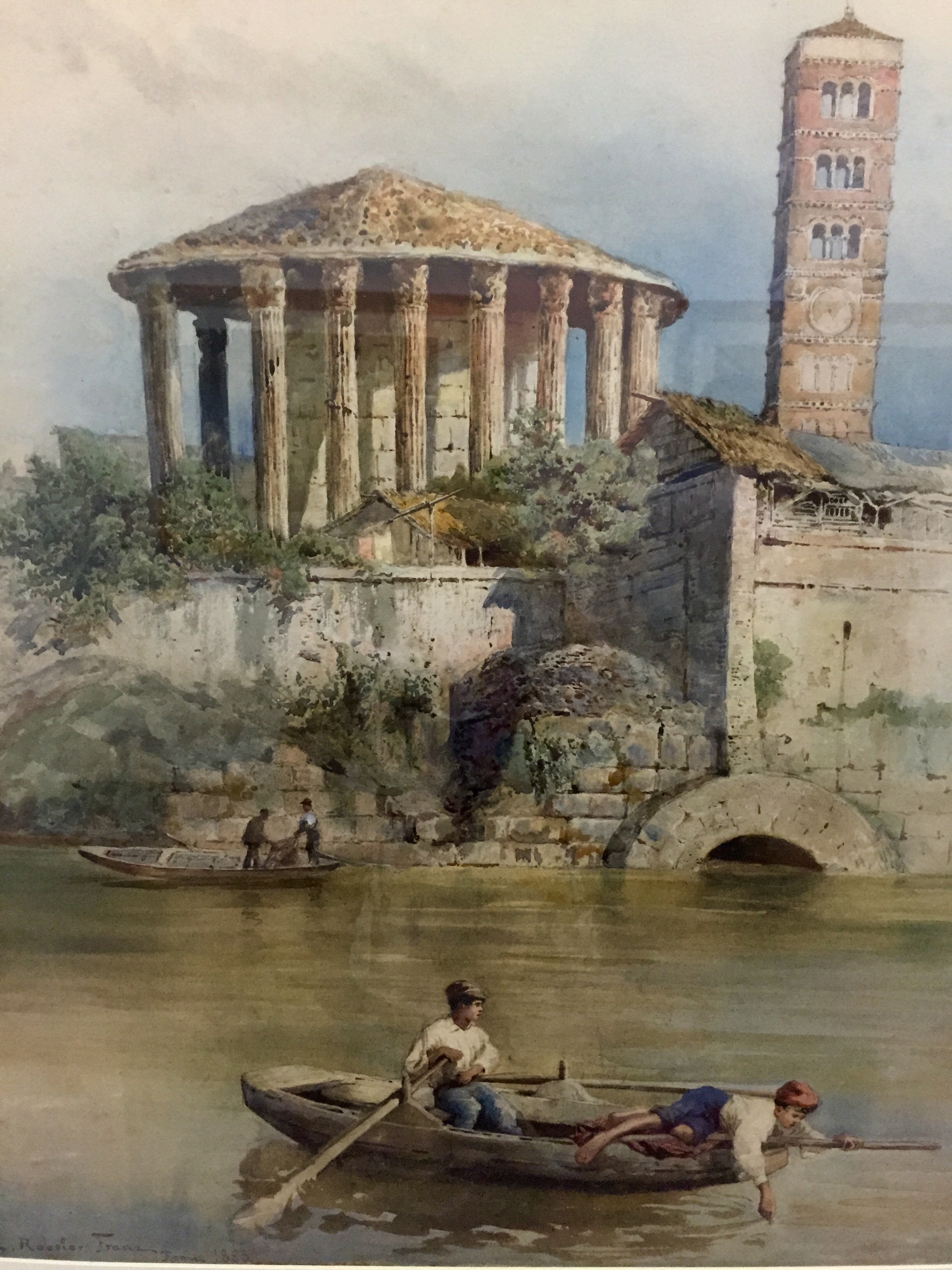 Ettore Roesler Franz, Il Tempio di Ercole e la Cloaca Massima dal Tevere, 1883, acquarello su carta (The Temple of Hercules and the Cloaca massima from the Tiber). Foto Safarik Art Magazine