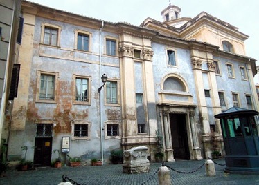 E’ una Chiesa. Per la precisione la facciata dell’ingesso laterale della Chiesa e Monastero di Santa Maria in Campo Marzio, facciata a timpano sorretta da due colonne con rifacimenti de XVIII sec. e lanterna (foto Street View Google Maps), trasformata in chiesa barocca nel 1668-85, l’interno consta di un’imponente croce greca con sette altari e l’originale cupola ellittica senza tamburo.